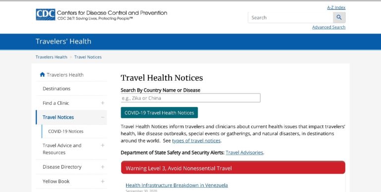Official U.S. government health recommendations for traveling. Provided by the U.S. Centers for Disease Control and Prevention (CDC).Travel Health Notices | Travelers’ Health | CDC
